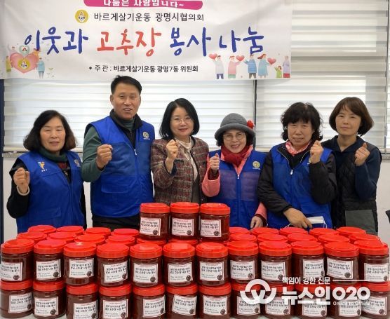 (뉴스인020 = 김성길 기자) 광명시 광명7동 바르게살기위원회는 지난 5일 광명7동 행정복지센터에서 ‘사랑의 고추장 나눔’ 행사를 개최했다.