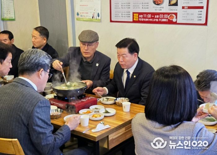 (뉴스인020 = 김성길 기자) 박승원 광명시장이 탄핵 시국 속 어려움을 겪고 있는 소상공인을 살리기 위해 17일 간부 공무원들과 광명사거리의 한 음식점에서 오찬회를 가졌다.