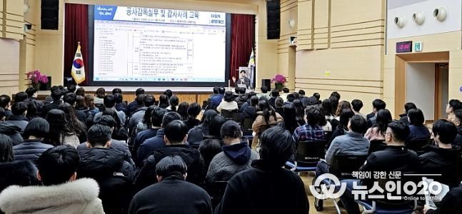 이날 교육에는 공사 관리·감독 공무원과 공공기관 직원 140여 명이 참석했으며, 한국학술연구용역협회 이사이자 예산회계실무 서울연구원인 최기운 강사가 나서 공사 관리·감독 감사사례 중심으로 강의를 진행했다.