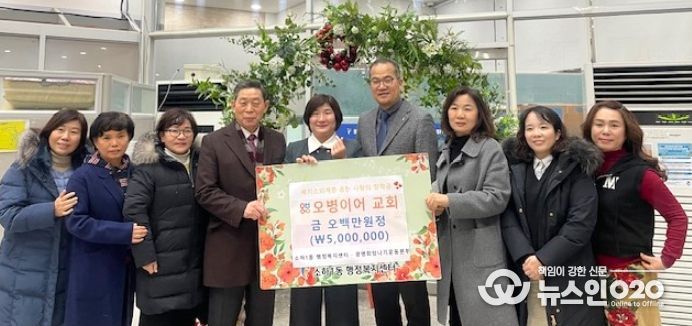 (뉴스인020 = 김성길 기자) 광명시 소하1동 오병이어 교회는 지난 19일 저소득가정 청소년 10명을 위한 장학금 500만 원을 소하1동에 전달했다.