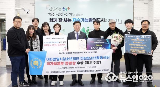 (뉴스인020 = 김성길 기자) 광명시 출연기관인 (재)광명시청소년재단 디딤청소년활동센터는 ‘2024년 보훈문화 체험활동 우수 프로그램 경진대회’에서 최우수 운영기관으로 선정되어 국가보훈부장관상을 수상했다.