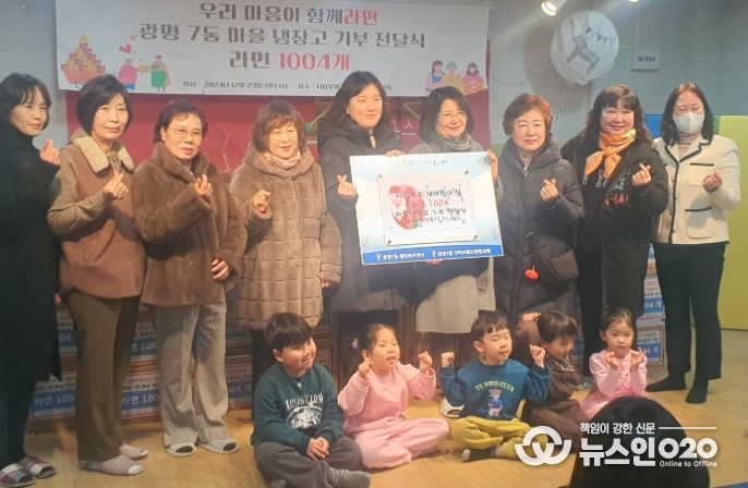(뉴스인020 = 김성길 기자) 광명시 광명7동 지역사회보장협의체는 지난 23일 시립 무지개 어린이집과 ‘우리의 마음이 함께 라면’을 주제로 광명7동 마을공유냉장고에 라면 천사(1004)개를 전달했다.