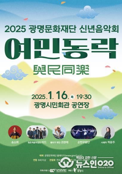 (뉴스인020 = 김성길 기자) (재)광명문화재단이 2025년 신년음악회 '여민동락(與民同樂)'을 오는 1월 16일(목) 오후 7시 30분 광명시민회관 공연장에서 올린다.