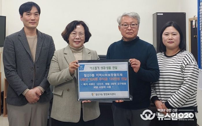 (뉴스인020 = 김성길 기자) 광명시 철산3동 지역사회보장협의체는 지난 26일 철산3동 행정복지센터에 사랑의 바자회 수익금 120만 원을 기부했다.
