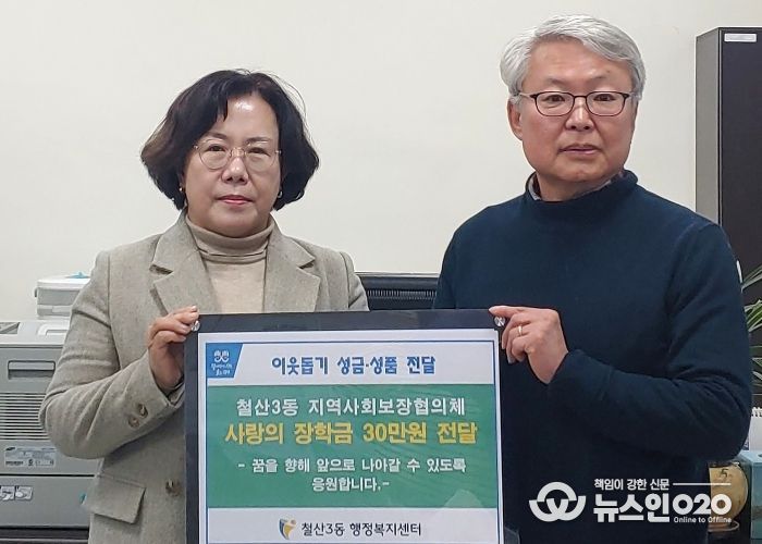 권위향 동장은 “철산3동 지역사회보장협의체는 올해도 지역 복지 향상을 위해 노력했다”며 “이번 장학금 기부는 위원들과 지역사회가 함께 이룬 의미 있는 성과로, 학생들에게 응원과 격려의 마음이 잘 전달되길 바란다”고 전했다.