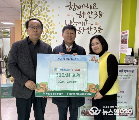 (뉴스인020 = 김성길 기자) 광명시 하안3동 행정복지센터는 지난 26일 더평안교회로부터 50만 원을 후원받았다.