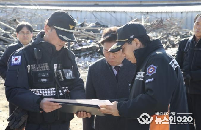 (뉴스인020 = 김성길 기자) 광명소방서는 2일 광명시청과 함께 작년 12월 23일에 발생한 노온사동 사들물류단지 화재현장을 방문했다.