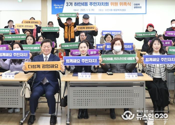 (뉴스인020 = 김성길 기자) 광명시 하안4동 행정복지센터는 지난 9일 행정복지센터 대강당에서 ‘제3기 하안4동 주민자치회 위원 위촉식’을 개최했다.