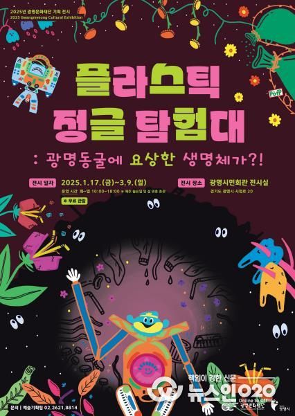(뉴스인020 = 김성길 기자) (재)광명문화재단은 어린이와 가족 관람객을 위한 전시 '플라스틱 정글 탐험대: 광명동굴에 요상한 생명체가?!'를 1월 17일부터 3월 9일까지 광명시민회관 전시실에서 개최한다.