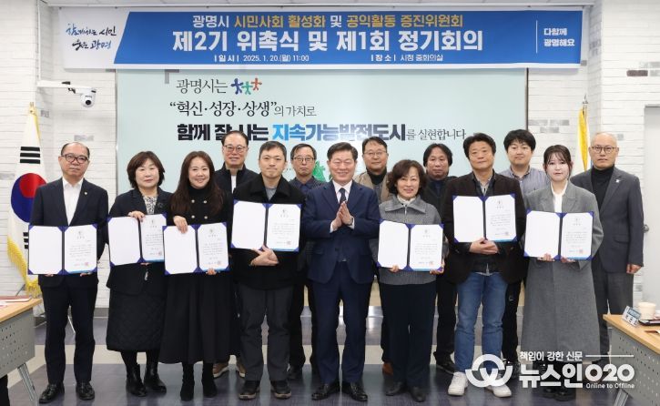 (뉴스인020 = 김성길 기자) 광명시는 20일 오전 시청 중회의실에서 ‘광명시 시민사회 활성화 및 공익활동 증진위원회’ 2기 출범식을 가졌다.