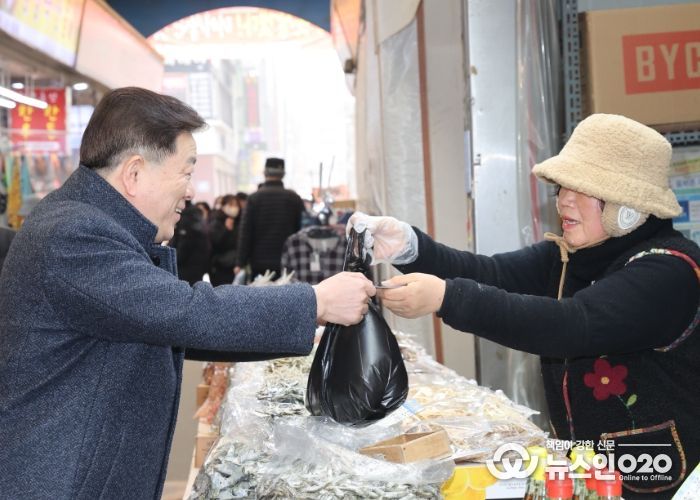 (뉴스인020 = 김성길 기자) 박승원 광명시장이 설 명절을 앞두고 20일 광명전통시장에서 물가를 살피며 상인과 시민들을 격려했다.