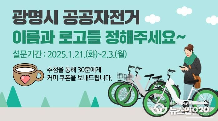 (뉴스인020 = 김성길 기자) 광명시가 광명형 공공자전거 이름과 브랜드 디자인 선정에 시민 의견을 반영한다.