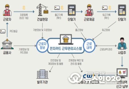 전자카드제: 서울시가 발주한 건설공사 현장에 출·퇴근 카드단말기를 설치해 일용직 건설근로자의 근로 이력을 관리하는 시스템이다.