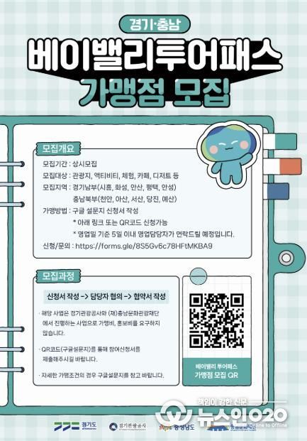 (뉴스인020 = 김성길 기자) 경기관광공사는 경기투어패스와 유사한 ‘베이밸리 투어패스’ 사업 추진에 앞서 이용객 증대 및 만족도 제고 차원에서 경기 남부의 5개 해당 시에서 가맹점을 상시 모집 중이라고 21일 밝혔다.