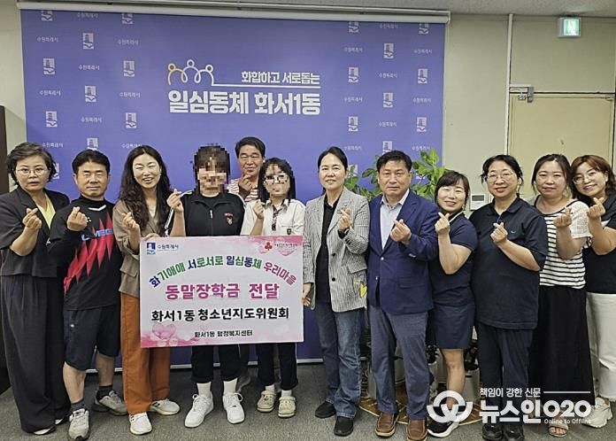 (뉴스인020 = 기자) 수원시 팔달구 화서1동 청소년지도위원회는 매년 지역 내 저소득 가정 청소년들에게 장학금을 전달하며, 따뜻한 나눔과 격려의 마음을 실천하고 있다.