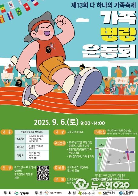 (뉴스인020 = 김성길 기자) 강동구는 '제13회 다 하나의 가족 축제 '가족 명랑 운동회''에 참여할 가족 300여 명을 오는 8월 27일까지 모집한다고 밝혔다.