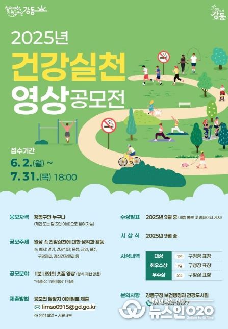 (뉴스인020 = 김성길 기자) 강동구(이수희 구청장)는 '2025 건강 실천 영상 공모전'을 개최해 총 9편의 수상작을 선정했다고 밝혔다.