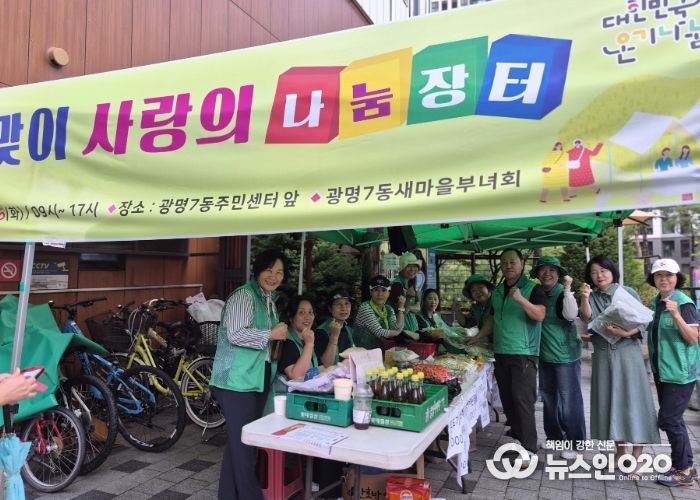 (뉴스인020 = 김성길 기자) 광명시 광명7동 새마을부녀회는 지난 16일 광명7동 행정복지센터 앞에서 추석맞이 사랑의 나눔장터를 열었다.
