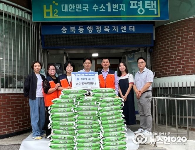 (뉴스인020 = 김성길 기자) (합자)송탄평애미화사가 다가오는 추석 명절을 맞아 17일 쌀 10㎏ 40포를 평택시 송북동 행정복지센터에 기부했다.