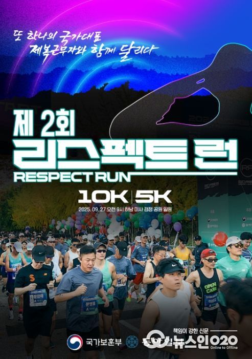 (뉴스인020 = 김민석 기자) 국가보훈부는 2025년 제복근무자 감사캠페인의 일환으로 시민과 함께하는 제복근무자 감사 마라톤 ‘제2회 리스펙트 런’을 오는 27일 오전, 경기도 하남시 미사경정공원에서 개최한다고 밝혔다.