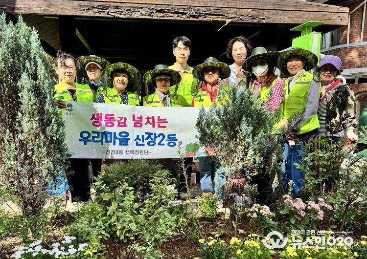이번 행복정원 조성은 성큼 다가온 가을을 맞이하여 행복정원단 단원과 신장2동 행정복지센터 직원 14명이 참여한 가운데, 관내 행복 정원에 국화와 블루샐비어 등 6종의 다채로운 꽃을 식재하여 화사하고 아름다운 가을 분위기를 조성했다.