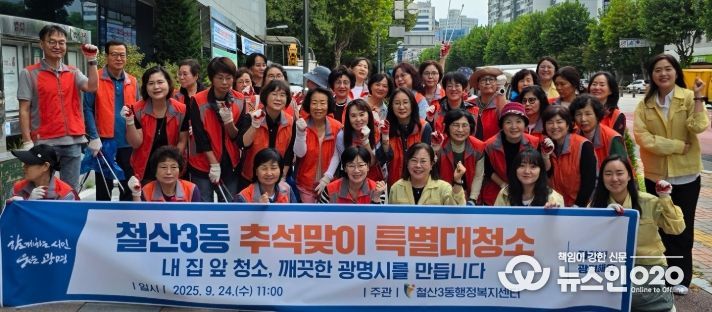(뉴스인020 = 김성길 기자) 광명시 철산3동 행정복지센터는 지난 24일 추석을 앞두고 ‘대한민국 새단장 캠페인’의 일환으로 대청소를 실시했다.