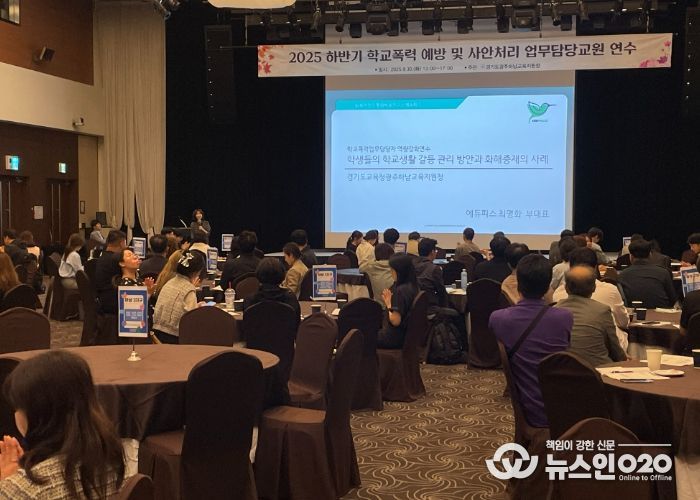 (뉴스인020 = 김성길 기자) 광주하남교육지원청은 2025년 9월 30일 관내 초중고, 특수학교 및 공민학교의 학교폭력 담당부장 및 책임교사 180여 명을 대상으로 학교폭력 예방 및 사안처리 연수를 실시했다.