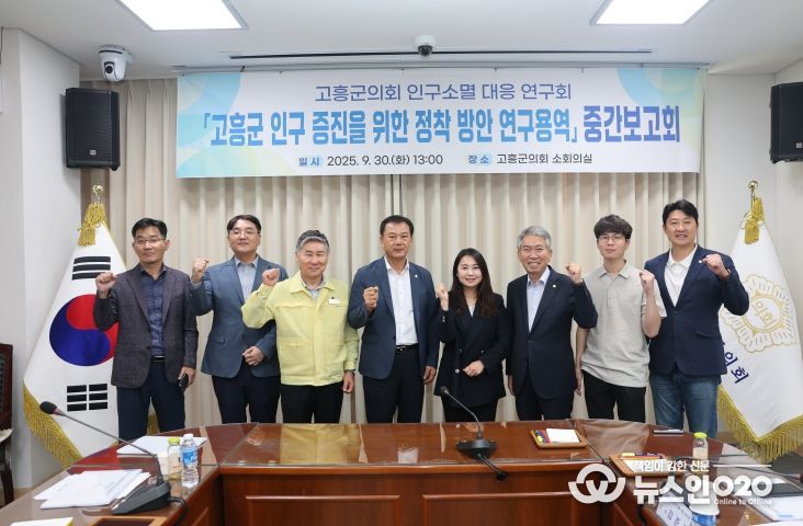 (뉴스인020 = 김성길 기자) 고흥군의회 의원연구단체인 ‘고흥군의회 인구소멸 대응 연구회(대표 박경석)’는 지난 9월 30일 군의회 소회의실에서 ‘고흥군 인구 증진을 위한 정착 방안 연구용역’ 중간보고회를 개최했다.