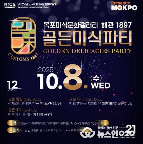 (뉴스인020 = 김성길 기자) 목포시가 오는 10월 8일 ‘목포해관1897 미식문화갤러리’에서 '골든미식파티'를 개최한다.