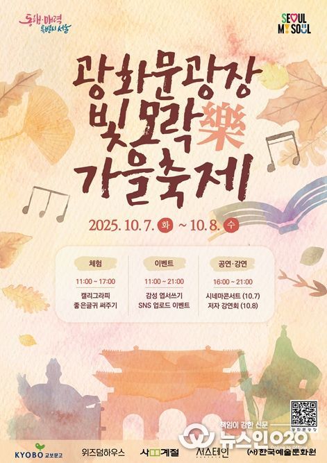 서울시는 10월 7일~8일 이틀간 ‘2025 광화문광장 빛모락 가을축제’를 개최한다고 밝혔다.