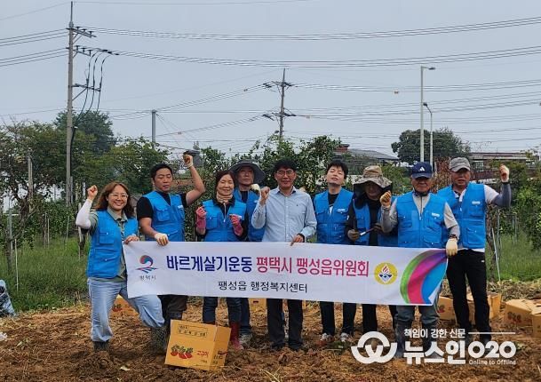 (뉴스인020 = 김성길 기자) 평택시 바르게살기운동 팽성읍 위원회는 지난달 30일 팽성읍 남산리 77-14 텃밭에서 ‘이웃사랑 고구마 수확 행사’를 진행했다.