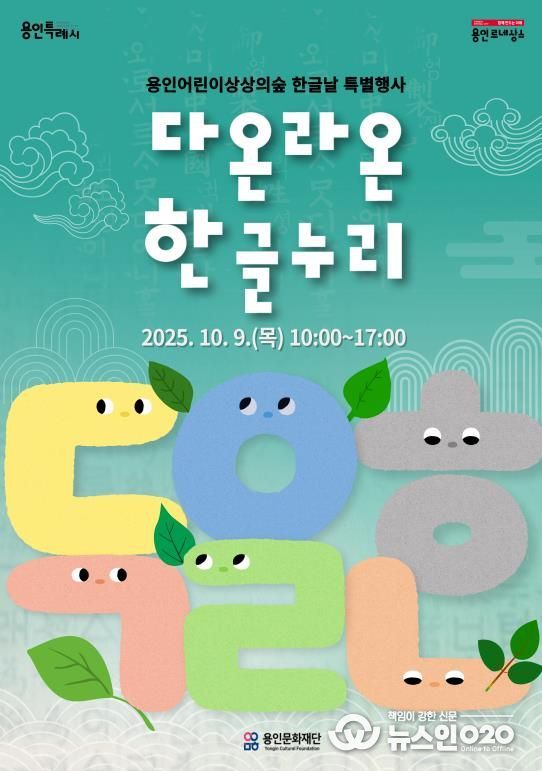 (뉴스인020 = 김성길 기자) 용인문화재단은 오는 10월 9일, 제579돌 한글날을 기념해 어린이를 위한 특별행사 ‘다온라온 한글누리’를 용인어린이상상의숲에서 개최한고 밝혔다.
