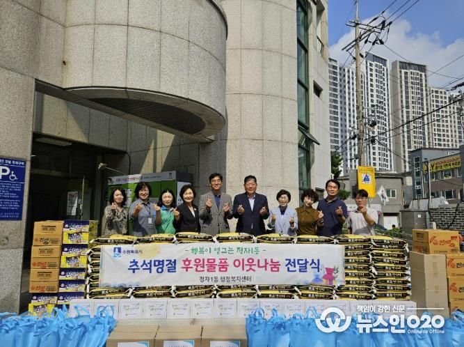 (뉴스인020 = 기자) 수원시 장안구 정자1동은 지난 1일, 추석 명절을 앞두고 관내 단체, 기업, 개인 등에서 기탁한 성금과 물품을 어려운 이웃들에게 전달하는 ‘추석 이웃사랑 나눔 전달식’을 개최했다.