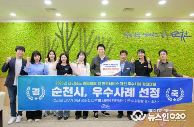 (뉴스인020 = 김성길 기자) 순천시가 전라남도 도민행복소통실에서 주관한 '2025년 민원제도 개선 우수사례' 공모에서 우수사례로 선정되어, 지난 1일 시상식 및 사례발표를 진행했다.
