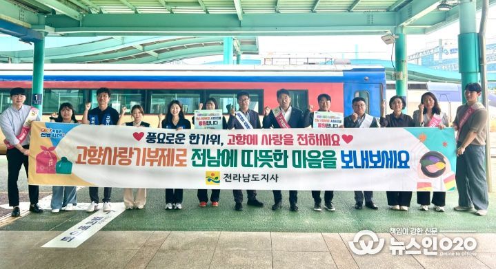 (뉴스인020 = 김성길 기자) 전라남도는 2일 목포역·순천역·나주역에서 민족 대명절인 추석을 맞아 ‘고향사랑기부제’와 ‘전남 사랑애(愛) 서포터즈’ 활성화를 위한 고향사랑 실천 캠페인을 진행했다고 밝혔다.