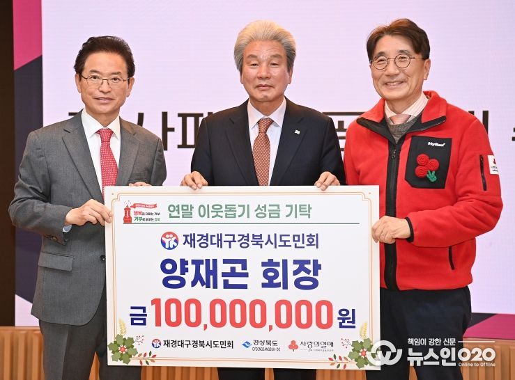 (뉴스인020 = 김성길 기자) 경상북도는 5일 양재곤 재경대구경북시도민회장이 경북도청을 방문해 연말 이웃돕기 성금 1억 원을 기탁했다.