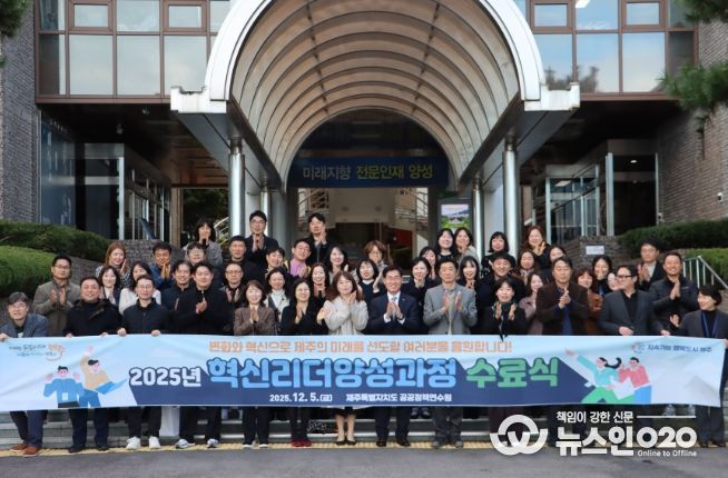 (뉴스인020 = 김성길 기자) 제주특별자치도 공공정책연수원(원장 양제윤)은 5일 ‘2025년 혁신리더양성과정’ 수료식을 열고 행정 환경 변화와 혁신을 주도할 차세대 공직 리더 40명을 배출했다고 밝혔다.