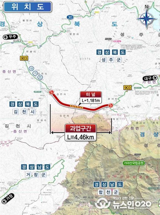 본 구간은 지방도 903호선의 마지막 미개설 구간으로 북측 성주군 금수강산면으로 약35㎞, 40분 거리를 우회했으나, 1.1㎞ 증산가천터널 관통 등 본 도로의 개통으로 이동시간이 6분으로 단축된다.