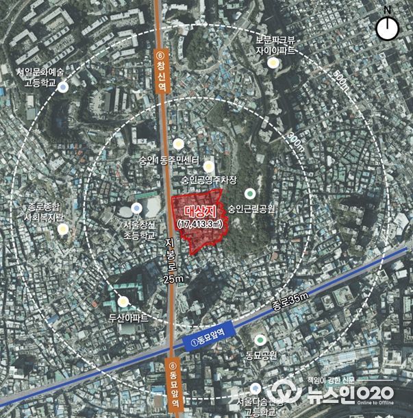 종로구 숭인동 61번지 일대(17,413.3㎡)는 모아타운 사업으로 기존 239세대에서 179세대 늘어난 총 418세대(임대 88세대 포함)를 공급할 예정이다. 대상지는 노후건축물 비율이 93.4%, 폭 4~6m 이하의 협소한 내부도로 등 열악한 여건으로 주거환경 개선이 필요했던 곳이다.
