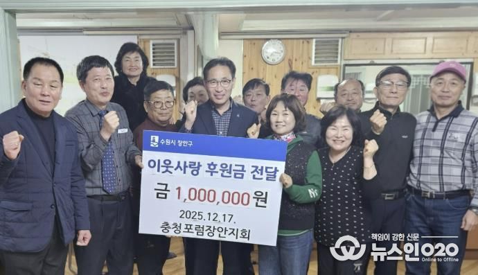 이일희 장안구청장은 “충청포럼 장안지회의 지속적인 관심과 후원에 감사드린다”며 “기부금은 지역사회 복지와 주민 지원을 위해 소중히 사용될 것”이라고 전했다.