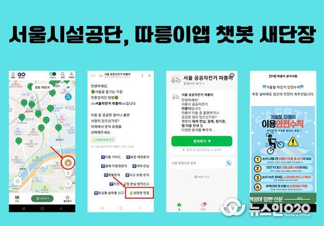 (뉴스인020 = 김성길 기자) 서울시설공단이 ‘따릉이’ 앱에 대화형 AI 챗봇을 도입해 시민들의 이용 편의를 한층 높인다. 기존의 단순한 상담 기능을 개선해, 19일부터 새롭게 업그레이드된 채팅 상담 기능을 선보인다.