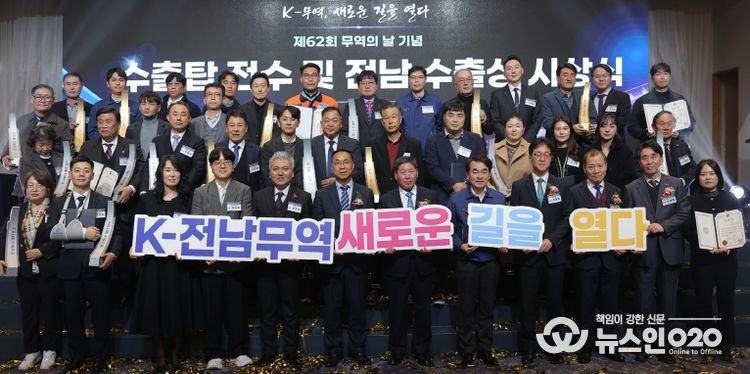 (뉴스인020 = 김성길 기자) 전라남도는 제62회 무역의 날을 기념해 수출탑 전수식과 전남 수출상 시상식을 지난 17일 호텔현대 바이 라한 목포에서 열어 전남 수출 성과를 공유하고 지속적인 수출 확대 방안을 모색했다.
