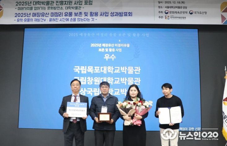 (뉴스인020 = 김성길 기자) 경상국립대학교 박물관이 2025년 매장유산 미정리유물 보존 및 활용사업 평가에서 ‘우수관’으로 선정돼, 지난해 최우수기관 선정에 이어 2년 연속 우수성을 인정받는 성과를 거두었다.