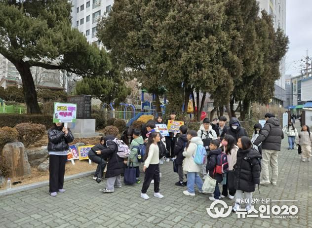 (뉴스인020 = 김성길 기자) 경기도김포교육지원청은 12월 23일, 양곡초등학교에서 '학교폭력·도박 예방 등굣길 캠페인'을 운영하고, 양곡초의 학교폭력 예방교육 성과를 우수사례로 소개했다. 양곡초는 2025년 현재 학교폭력 신고 건수가 단 2건에 불과해, 예방 중심 생활지도의 대표 사례로 주목받고 있다.