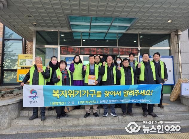(뉴스인020 = 김성길 기자) 평택시 청북읍 지역사회보장협의체는 지난 23일 청북읍 행정복지센터 일대에서 동절기 복지 사각지대 취약계층 발굴을 위한 캠페인을 진행했다.