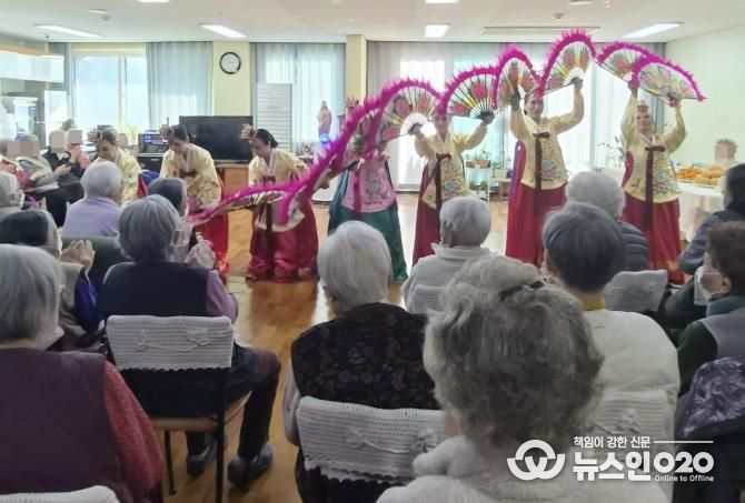 (뉴스인020 = 기자) 수원시 장안구 정자3동 주민자치회는 지난 28일, 노인주거복지시설인 “아녜스의 집”을 찾아 어르신들 생일잔치와 재능기부 공연을 진행했다.