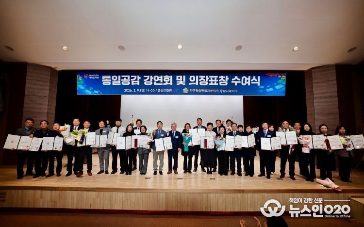(뉴스인020 = 김성길 기자) 민주평화통일자문회의 충남지역회의(부의장 정윤)는 2월 9일 오후 2시, 홍성문화원에서 '통일공감 강연회 및 의장표창 수여식'을 개최했다.