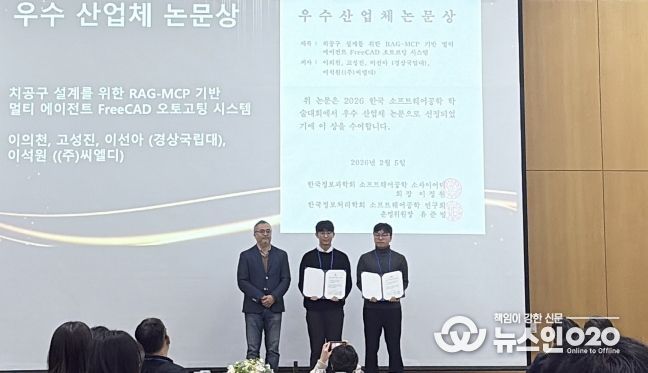 (뉴스인020 = 김성길 기자) 경상국립대학교 AI융합공학과의 박사과정 이의천 씨와 석사과정 고성진 씨(지도교수 이선아)는 ‘2026년 한국 소프트웨어공학 학술대회(KCSE2026)’에서 우수산업체 논문상을 수상했다.