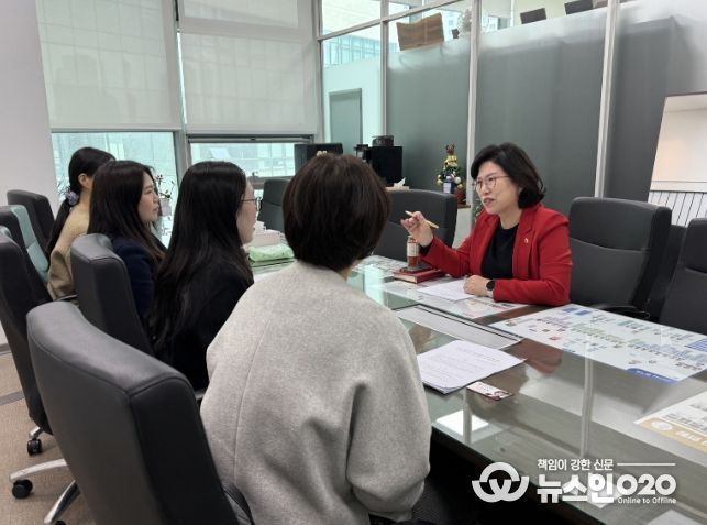 (뉴스인020 = 김성길 기자) 경기도의회 교육행정위원회 이애형 위원장(국민의힘, 수원 세류1·2·3동 및 권선1동)은 17일(화) 전국보건교사노조 경기지부 김성경 지부장 및 관계자들과 함께 학생 안전권 확보를 위한 보건실 공백 해소 관련 정담회를 개최했다.