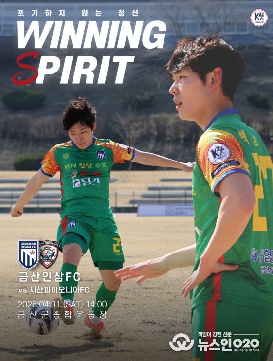 (뉴스인020 = 김성길 기자) 금산인삼에프씨(FC)는 오는 11일 금산종합운동장에서 서산파이오니아에프씨(FC)와 홈경기를 갖는다. 특히, 충남 지역의 자존심이 걸린 ‘충남 더비’로 격돌하며 축구 팬들의 뜨거운 관심을 모으고 있다.